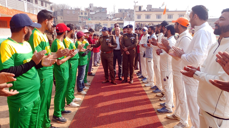 DIG Dr Sunil Gupta interacting with players during Martyrs Memorial T20 Cricket tourney at Doda on Friday. -Excelsior/Tilak Raj