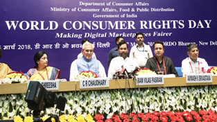 Dignitaries during International Consumer Rights Day function at New Delhi on Thursday.