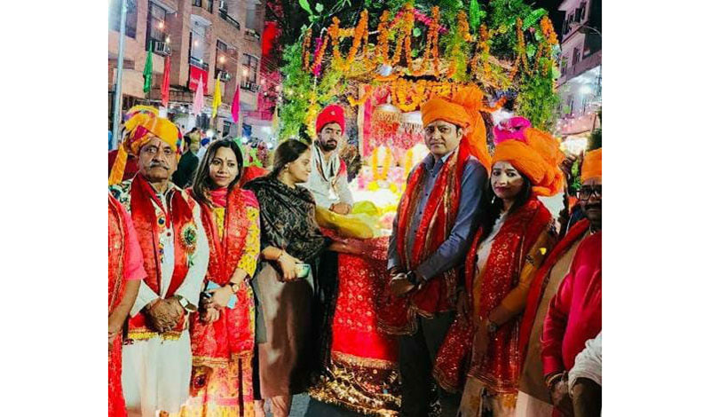 Dignitaries during Shobha Yatra on 8th day of Navratra Festival at Katra. By Daily Excelsior - October 3, 2022 Share FacebookTwitterWhatsAppPinterestLinkedinCopy URLTelegramEmailTumblrReddItPrintKoo Dignitaries during Shobha Yatra on 8th day of Navratra Festival at Katra. Dignitaries during Shobha Yatra on 8th day of Navratra Festival at Katra. Follow our WhatsApp channel