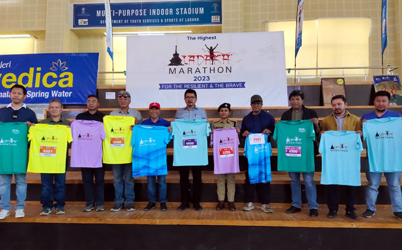 Dignitaries launching jersey of Ladakh Marathon at Leh on Wednesday . By Daily Excelsior - August 30, 2023 Share FacebookTwitterWhatsAppPinterestLinkedinCopy URLTelegramEmailTumblrReddItPrintKoo Dignitaries launching jersey of Ladakh Marathon at Leh on Wednesday . Dignitaries launching jersey of Ladakh Marathon at Leh on Wednesday . Follow our WhatsApp channel