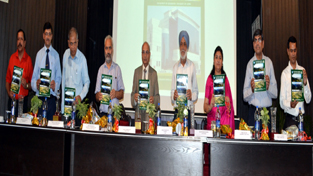 Dignitaries releasing abstract book of conference in the inaugural of two-day seminar at JU on Monday.