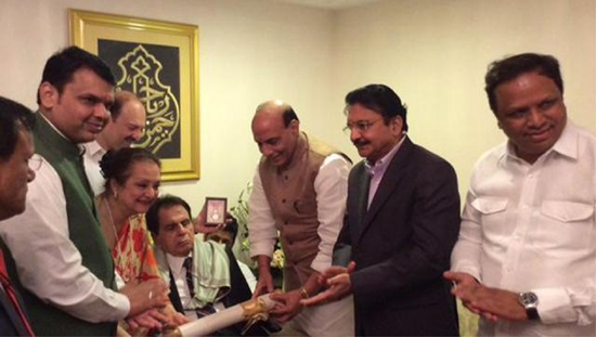 Maharashtra Governor C Vidyasagar Rao, Chief Minister Devendra Fadnavis, were among other dignitaries present at the actor’s home when he received the award.