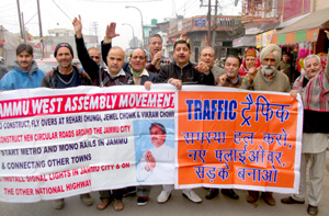Addressing the demonstration, Sunil Dimple appealed the Governor N N Vohra to direct the authorities to construct the flyovers at Rehari Chungi and Jewel Chowk.