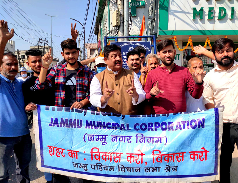 JAMMU, Aug 25: President of Mission Statehood, Sunil Dimple today led a strong protest against what he termed the “substandard quality” of work carried out under the Jammu Smart City project by JMC, PWD, ERA and NHAI.