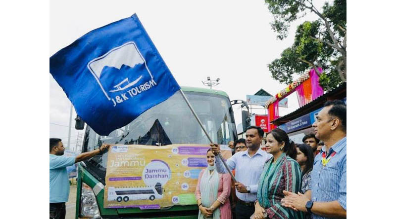JAMMU, July 8: Director Tourism Jammu Vivekanand Rai and Joint Director Tourism Jammu Sunaina Sharma Mehta today flagged off a special bus service titled “Jammu Darshan” for the benefit of pilgrims staying at the Yatri Niwas, Bhagwati Nagar, Jammu.