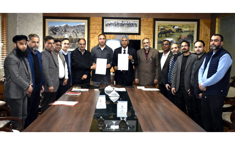 Director IIM Jammu and Vice-Chancellor of SKUAST Kashmir displaying copies of MoU signed between the two institutions. By Daily Excelsior - March 21, 2024 Share FacebookTwitterWhatsAppPinterestLinkedinCopy URLTelegramEmailTumblrReddItPrintKoo Director IIM Jammu and Vice-Chancellor of SKUAST Kashmir displaying copies of MoU signed between the two institutions. Director IIM Jammu and Vice-Chancellor of SKUAST Kashmir displaying copies of MoU signed between the two institutions. Follow our WhatsApp channel