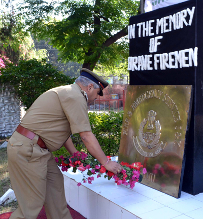 The main function was held at Fire & Emergency Services Headquarter Gandhi Nagar Jammu where Director Fire and Emergency Services RK Haq laid wreath on memorial to pay tribute to gallant firemen who were martyred in the line of duty.