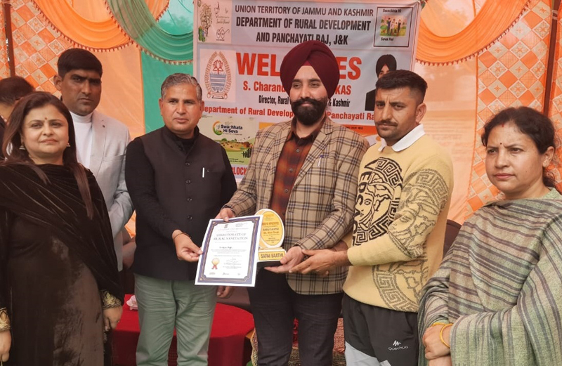 Director Rural Sanitation Charandeep Singh handing over a certificate to a Safai Sathi. By Daily Excelsior - February 18, 2023 Share FacebookTwitterWhatsAppPinterestLinkedinCopy URLTelegramEmailTumblrReddItPrintKoo Director Rural Sanitation Charandeep Singh handing over a certificate to a Safai Sathi. Director Rural Sanitation Charandeep Singh handing over a certificate to a Safai Sathi. Follow our WhatsApp channel