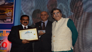 Director Tourism Soujanya Sharma receiving favourite pilgrimage award from Secy Tourism Govt of India Pervez Diwan at New Delhi.