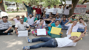 Displaced youth protesting at Jammu on Sunday.— Excelsior/Rakesh By Daily Excelsior - July 10, 2016 Share FacebookTwitterWhatsAppPinterestLinkedinCopy URLTelegramEmailTumblrReddItPrintKoo Displaced youth protesting at Jammu on Sunday.— Excelsior/Rakesh Displaced youth protesting at Jammu on Sunday.— Excelsior/Rakesh Follow our WhatsApp channel