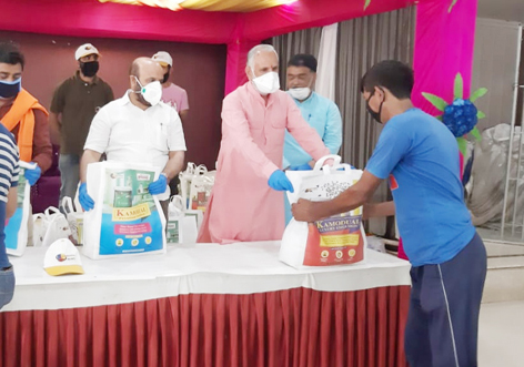 Kulbushan Gupta (Manu Mahajan) Owner of Sansar Atta and Dal Mill distributed ration at Jammu to the needy families.