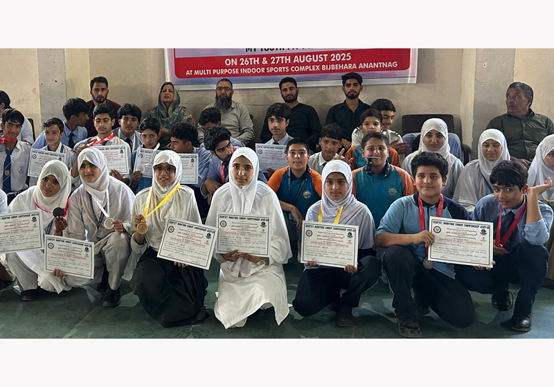 ANANTNAG, Sept 17: The District Anantnag Carrom Championship 2025-26 concluded today at Multi-Purpose Indoor Sports Complex, Bijbehara, showcasing enthusiastic participation from carrom players across the district. Organised by the District Anantnag Carrom Association under the aegis of the J&K Carrom Association and the J&K Sports Council’s “My Youth My Pride” initiative, the championship featured competitions across various age groups.