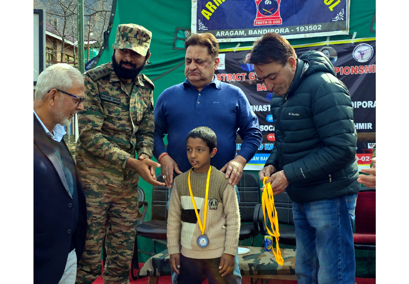 BANDIPORA, Feb 20: The 1st District Gymnastics Championship was held at Army Goodwill School, Aragam, with over 100 participants from various academies competing in multiple gymnastics disciplines. The event was organized by the Adoc District Gymnastics Association of Bandipora, in collaboration with the Gymnastics Association of J&K and the Jammu & Kashmir Sports Council.