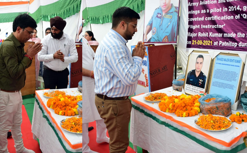 GHAGWAL, May 17: In a touching tribute to the brave heart officers and soldiers, who sacrificed their lives for the nation, the District Administration Samba has named the Model Higher Secondary School in Ghagwal after the name of the late Major Rohit Kumar. The historic event aimed to commemorate the fallen hero here today.