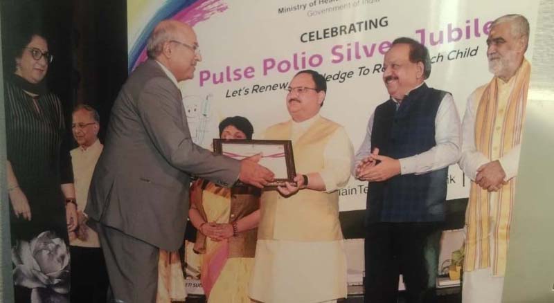 The award was presented by Union Minister for Health and Medical Education, Dr Harsh Vardhan in a function at New Delhi commemorating Silver Jubilee of Pulse polio campaign in India. Former Union Health Minister and National working president of BJP, J P Nadda was the chief guest on the occasion.