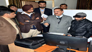 Divisional Commissioner Dr Pawan Kotwal and Deputy Commissioner Simrandeep Singh during visit to office of RD Survey and Land Records on Saturday.