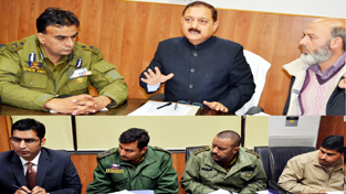 Divisional Commissioner Dr Pawan Kotwal chairing a meeting at Jammu on Thursday.