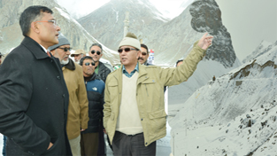 Divisional Commissioner, Shalindra Kumar taking stock of developmental activities at Kargil on Monday.