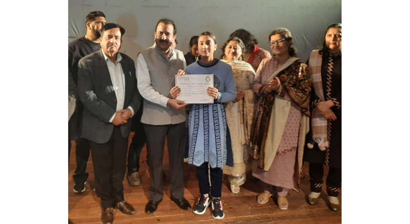 Speaking at the valedictory function, Director School Education Jammu, Dr Ravi Shankar Sharma congratulated the winners and wished them good luck for the coming UT level competition. He said that the Kala Utsav is a platform for the students to display their talents and harness them to succeed in various fields of fine arts which now a days are providing very good career options.