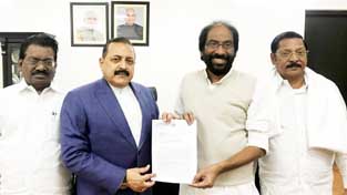 DMK party delegation, led by Rajya Sabha MP Tiruchi Siva, handing over to Union Minister Dr Jitendra Singh, a letter from DMK leader, M.K. Stalin, at New Delhi on Tuesday.