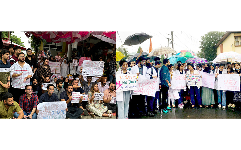 JAMMU, Aug 17: The doctor and paramedic fraternity across Jammu and Kashmir today came together to condemn in strongest terms the recent brutal rape and murder of a female trainee doctor in a hospital in Kolkata, and staged protests demanding fair probe into the incident and stringent punishment for the accused.