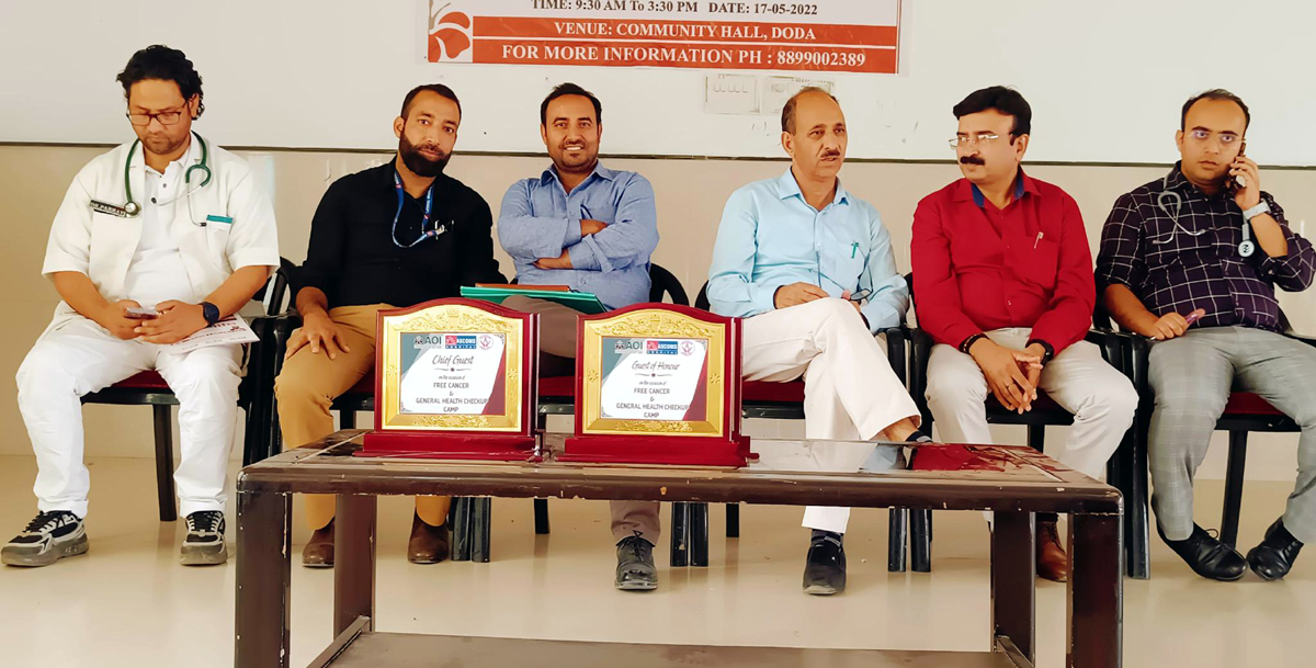 Doctors and AOI officials during a cancer screening camp in Doda district. By Daily Excelsior - May 18, 2022 Share FacebookTwitterWhatsAppPinterestLinkedinCopy URLTelegramEmailTumblrReddItPrintKoo Doctors and AOI officials during a cancer screening camp in Doda district. Doctors and AOI officials during a cancer screening camp in Doda district. Follow our WhatsApp channel