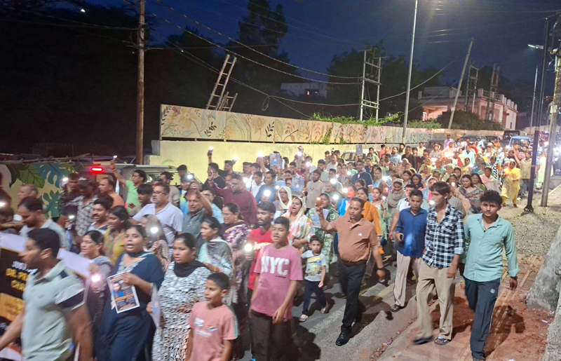 Protesters carrying candles raised slogans seeking justice, while a large number of residents joined the demonstration.