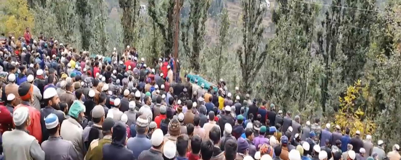 Thousands of people gathered at village Mangota and took part in the last rites of the accident victims.