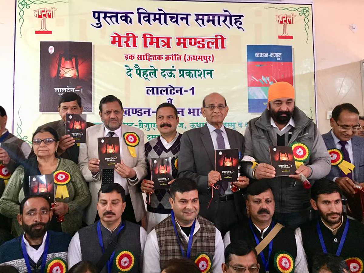 UDHAMPUR, Dec 17: Two maiden Dogri publications of Meri Mitra Mandali, “Lalten – 1 (an anthology of the Dogri poems of 28 poets) and Khandan-Mandan Bhag- 2 (a book on Dogri criticism by Surjit Hosh Badsali) were released by Dr Nutan Kumar Resutra, Principal of the Government PG College Udhampur, and galaxy of academicians, intellectuals from Jammu and Udhampur