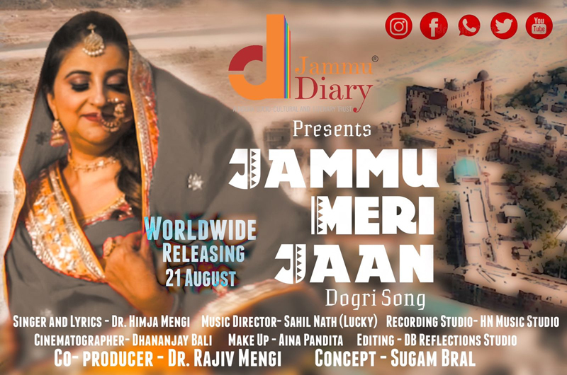 JAMMU, Aug 21: Dogri song ‘Jammu Meri Jaan’ sung by Dr. Himja Mengi was today released by Jammu Diary-a Dogra Socio-Cultural and Literary Trust.