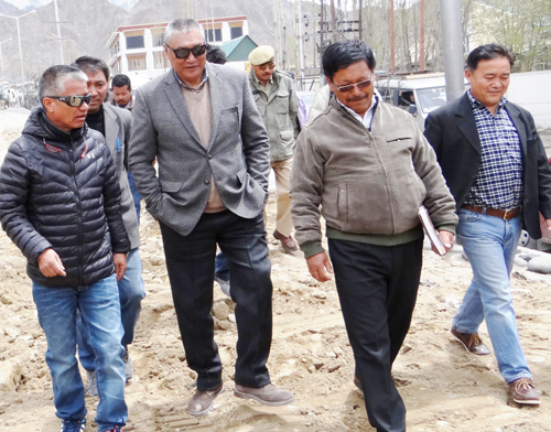 LEH: The Minister for Cooperatives & Ladakh Affairs, Chering Dorjay, today inspected various developmental works currently under execution in Leh.