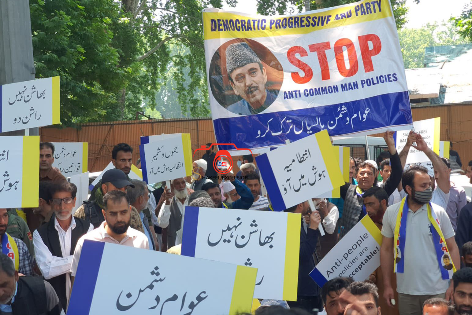 The party led by former Jammu and Kashmir chief minister Ghulam Nabi Azad also raised the issues of price rise and imposition of property tax during the protest.
