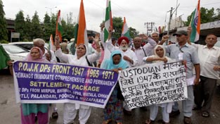 JAMMU, July 10: The displaced persons (DPs) from Pak occupied Jammu and Kashmir today held protest demonstration and dharna near Press Club here today.