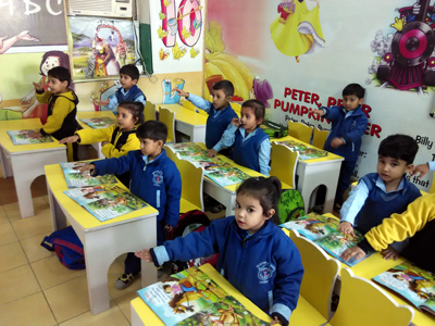 Further, to highlight the importance of books, the students of middle wing dressed up favourite characters from books and described their adventures, experiences and travails much to the excitement of their peer community. Other classes participated in book mark making, cover designing and decorating graffiti wall activities.