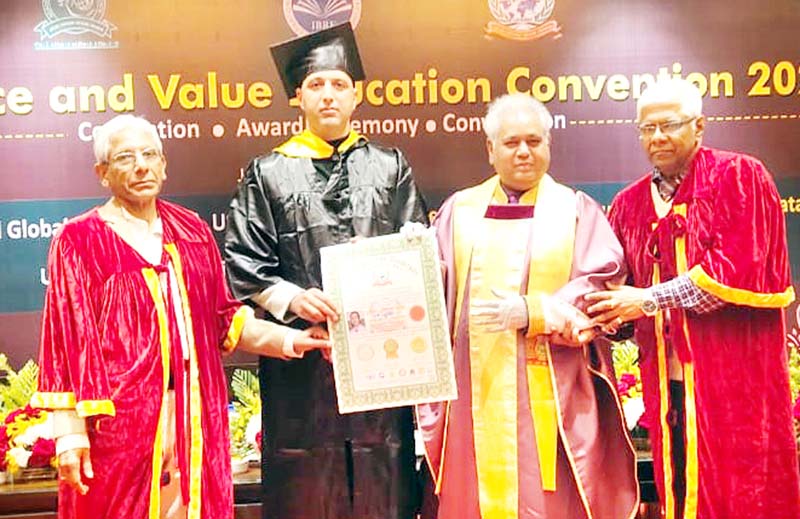 JAMMU, Dec 22: Dr Ajaz Ahmed Wani, Head of Department of Zoology Government Degree College Doda has been awarded with Doctor of Literature (D.Lit) by United Nations University for Global Peace USA in a convention held at Kolkata on December 19.