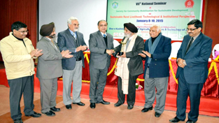 Dr B S Hansra receiving Life Time Achievement Award during valedictory function of three-day national seminar at SKUAST-Jammu.