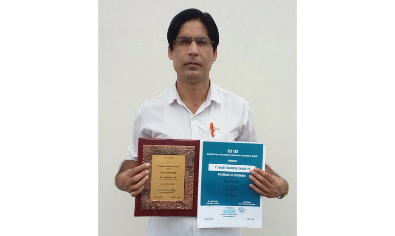 JAMMU, Sept 26: Incharge Senior Scientist-cum-Head of Krishi Vigyan Kendra (KVK), Reasi of Sher-e-Kashmir University of Agricultural Sciences and Technology-Jammu (SKUAST-J) Dr Banarsi Lal has been conferred with the Best Scientist Award in the 7th Faculty Branding Awards-2019.