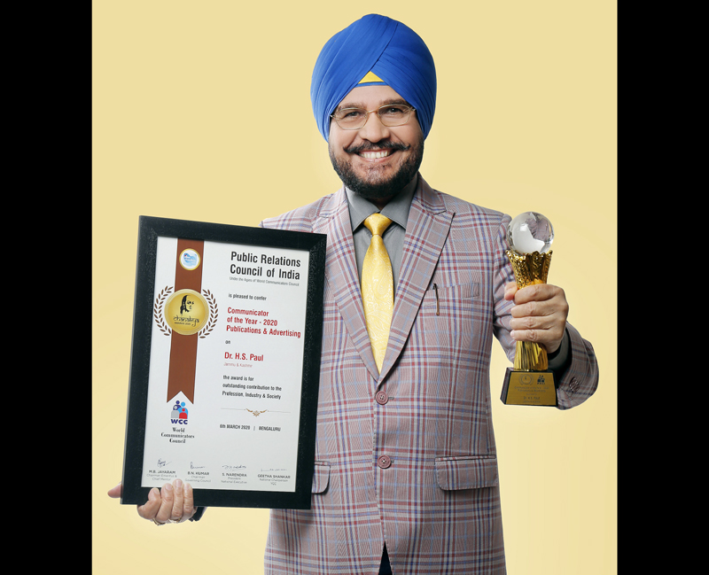 On this occasion, Dr HS Paul, Delhi Bureau Chief and Space Marketing Head (North India) of Daily Excelsior of Jammu was conferred with prestigious “PRCI—11th Chanakya Communicator of the Year Award 2020” for outstanding contribution to the profession, industry and society. Dr Paul has been instrumental in exploring the potentials of Jammu and Kashmir market among all categories of advertisers throughout the country.