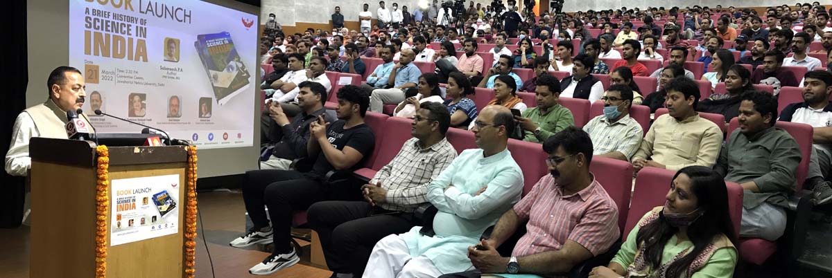 NEW DELHI, Mar 21: Addressing the book launch event at Jawaharlal Nehru University (JNU) today, Union Minister of State (Independent Charge) Science & Technology; Minister of State (Independent Charge) Earth Sciences; MoS PMO, Personnel, Public Grievances, Pensions, Atomic Energy and Space, Dr Jitendra Singh called for standard publications and high quality scientific literature in Indian languages which can attract the world to India and its potential in the field of Science & Technology.