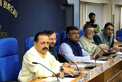 NEW DELHI, Mar 29: At a joint Press Conference convened here today by Union Ministers Ravi Shankar Prasad, Prakash Javadekar, Dr Jitendra Singh and Santosh Gangwar to furnish details about the decisions taken in the Cabinet meeting chaired by Prime Minister Narendra Modi, DoNER Minister Dr Jitendra Singh announced the decision of 100% funding for Centrally supported projects and works in Northeast and said, this would be a turning point in the transformation of Northeast.