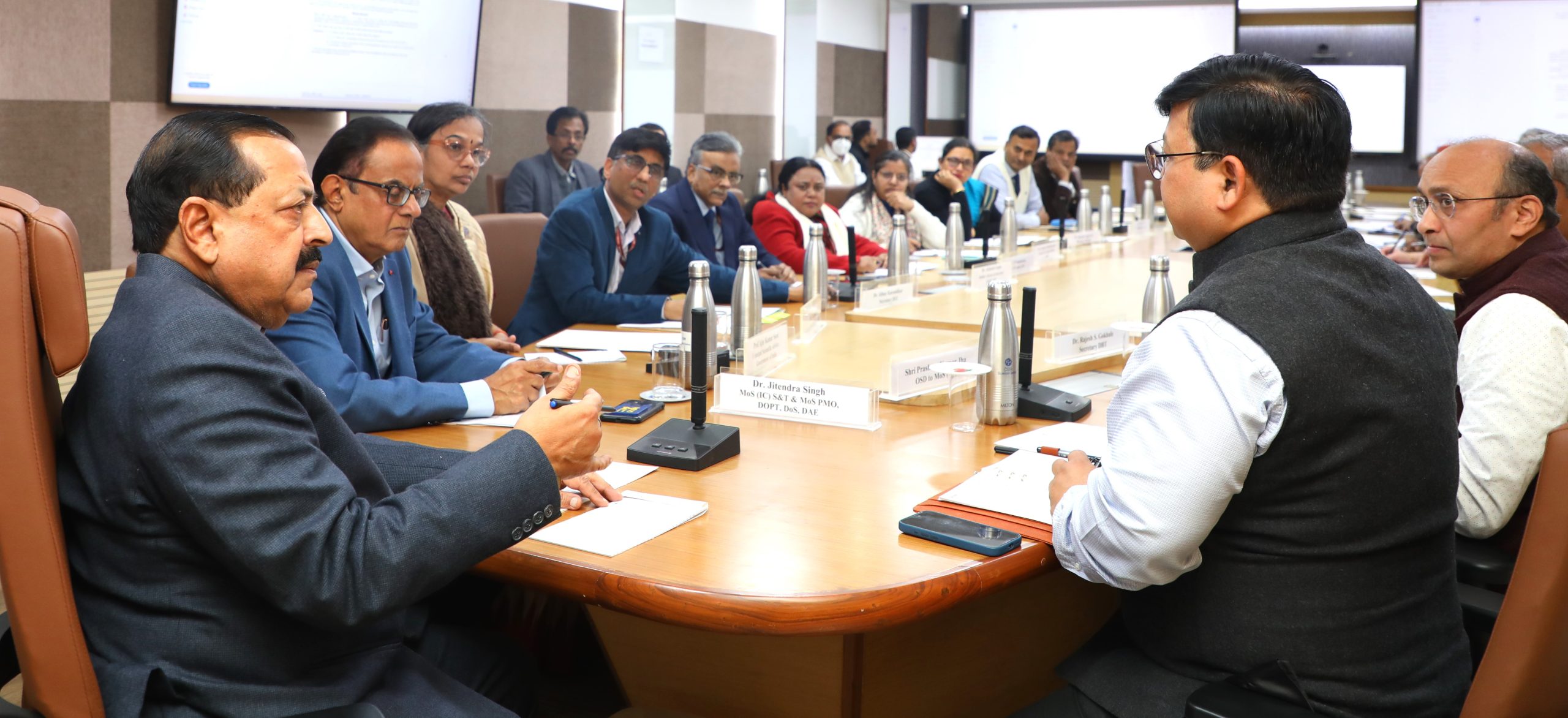 The meeting was held as part of the monthly review meetings of Science Secretaries, initiated by Dr Jitendra Singh in order to break the silos and evolve a synergistic integrated approach among different scientific streams.