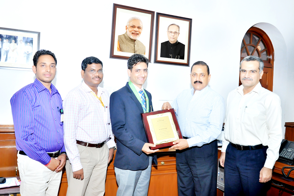Dr Jitendra felicitates Asian Games medalist Chain Singh