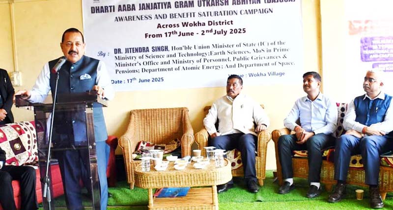 WOKHA, NAGALAND, June 17 : As part of the ongoing outreach under #11YearsOfSeva, Union Minister Dr. Jitendra Singh participated in a high-level meeting led by Temjen Imna Along, Minister for Tourism and Higher Education and former BJP State President of Nagaland, at Wokha. The meeting brought together a delegation of senior BJP leaders, the State BJYM President, tribal groups and local public representatives.