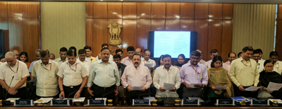 NEW DELHI, Aug 9: Union Minister of State (Independent Charge) for Development of North Eastern Region (DoNER), MoS PMO, Personnel, Public Grievances, Pensions, Atomic Energy and Space, Dr Jitendra Singh held here today the 75th Quit India commemoration at union capital’s North Block head quarters, with the administration of a pledge to work for “New India” and accomplish in the next five years up to 2022, an India which is free of terrorism, casteism, corruption, poverty and uncleanliness. Senior officers in the Govt of India, including union Secretary Personnel Ajay Mittal, were present on the occasion.