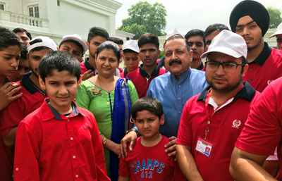 NEW DELHI, Sept 24: Union Minister of State (Independent Charge) for Development of North Eastern Region (DoNER), MoS PMO, Personnel, Public Grievances, Pensions, Atomic Energy and Space, Dr Jitendra Singh today hosted a get-together for a group of students from Udhampur and Reasi districts, currently on a visit to the union capital. He spent nearly two hours in an informal interaction with these students who were mostly in the age group of 16 to 20 years and were mostly studying in different Government schools or Government degree colleges.