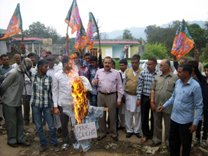 Meanwhile, later in the day,BJP State Executive Member Nand Kishore Sharma led a similar protest at Ramnagar Mandal of district Udhampur. Amit Sharma, Bansi Ram Sharma, Ramesh Singh, Parshotam Singh, Rajinder Singh, Sham Cerma, Raj Kumar, Mast Ram, Babu Ram, Karnail Singh and Suresh Kumar were among a large number of prominent party activists present at these protests.