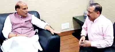 NEW DELHI, July 10 : Union Minister of State (Independent Charge) for Development of North Eastern Region (DoNER), MoS PMO, Personnel, Public Grievances, Pensions, Atomic Energy and Space, Dr Jitendra Singh today met Union Home Minister, Rajnath Singh and discussed with him, in detail, various aspects of the current Kashmir situation in the wake of the killing of Hijbul Mujahideen militant Burhan Wani.