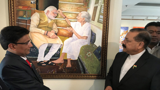 Dr Jitendra Singh commended Uttam Kumar for depicting themes related to flagship programmes of the Modi Government. This way, he said, the artist is also rendering a great service to the nation by acting as a messenger of Prime Minister Modi’s agenda for “New India”.