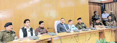 UDHAMPUR, Mar 25: Union Minister of State in PMO with Independent charge of North Eastern States, Dr Jitendra Singh reviewed the arrangements for the Prime Minister Narendra Modi’s  rally at Udhampur to be held on April 2 during the inauguration of Chenani-Nashri state of art tunnel in a high level meeting with the administration, public representatives and prominent citizens here today.