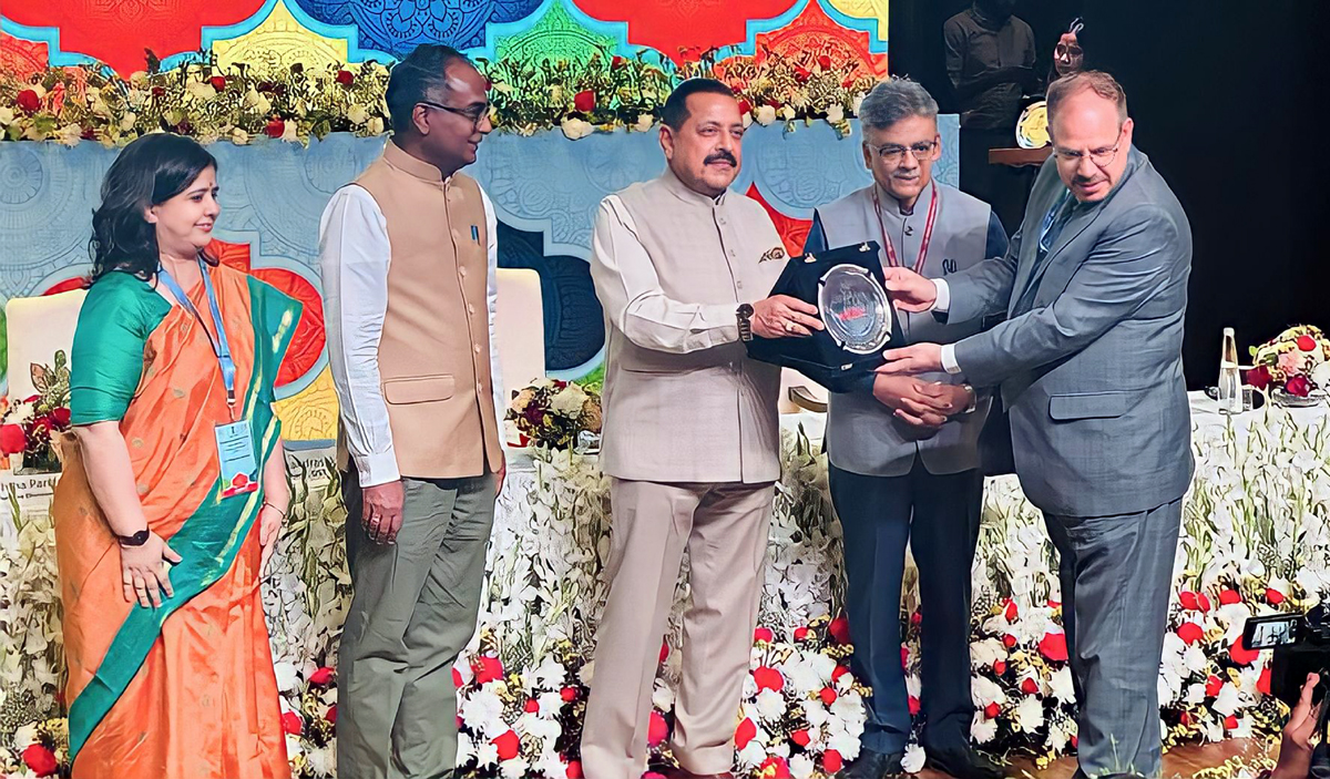 NEW DELHI, Apr 25: In the Vishwavidyala Anusandhan Utsav 2023, organized by the Department of Science and Technology, Govt of India, Union MoS (Independent Charge) Science & Technology; MoS (Independent Charge) Earth Sciences; MoS PMO, Personnel, Public Grievances, Pensions, Atomic Energy and Space, Dr Jitendra Singh, felicitated IUST among other recipient Institutions of the PURSE Grant.